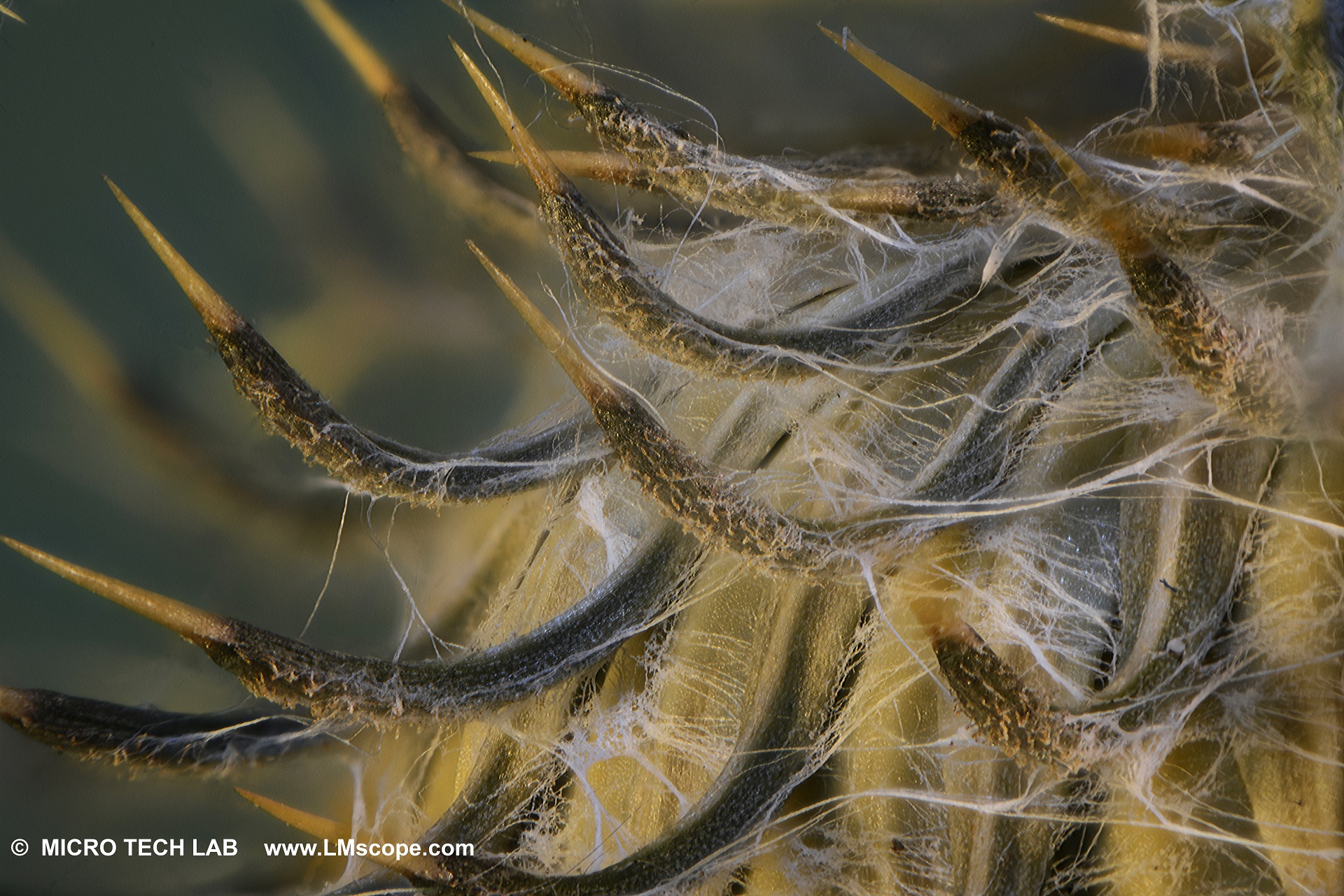 +43-664-7926425 ( Mo - Fr 10:00 - 16:00 )498 Gebogene Stacheln einer KletteLM Makroskop, Vollformatkamera