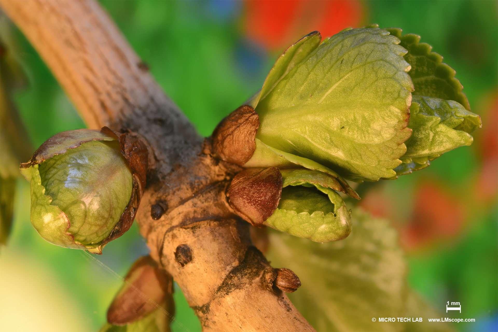 +43-664-7926425 ( Mo - Fr 10:00 - 16:00 )498 Zierquitte im FruehlingLM Makroskop 9x, Nikon Z6, Fokus Stacking Technik